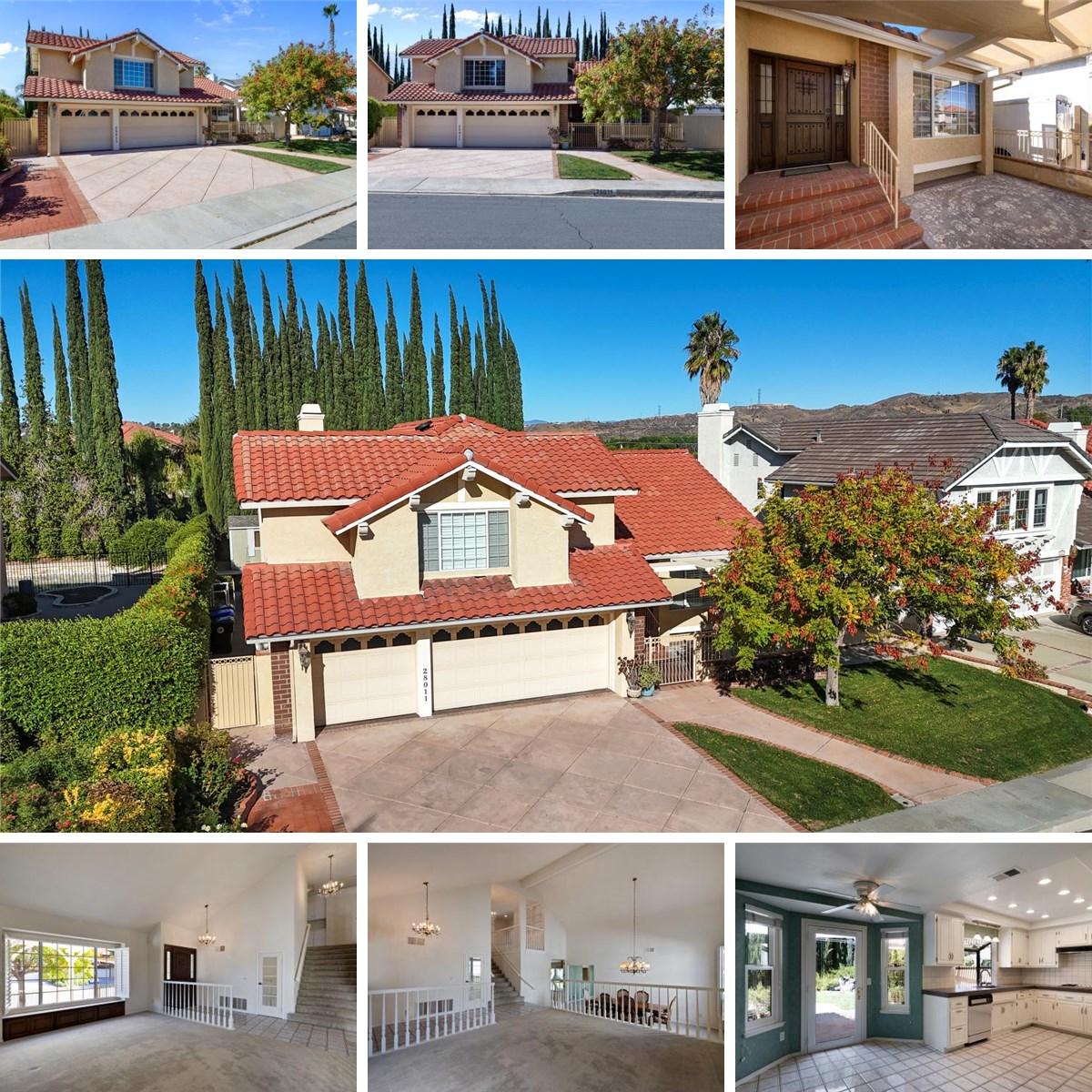 suite offers dual closets (one walk-in), a vanity dressing area, dual sinks, soaking tub, and frameless glass shower. Three additional bedrooms feature newer